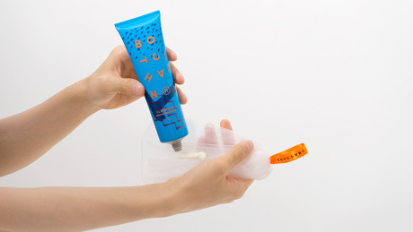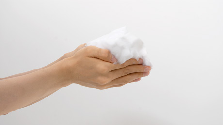 泡のクッションでなでるように、優しく丁寧に洗顔してください。